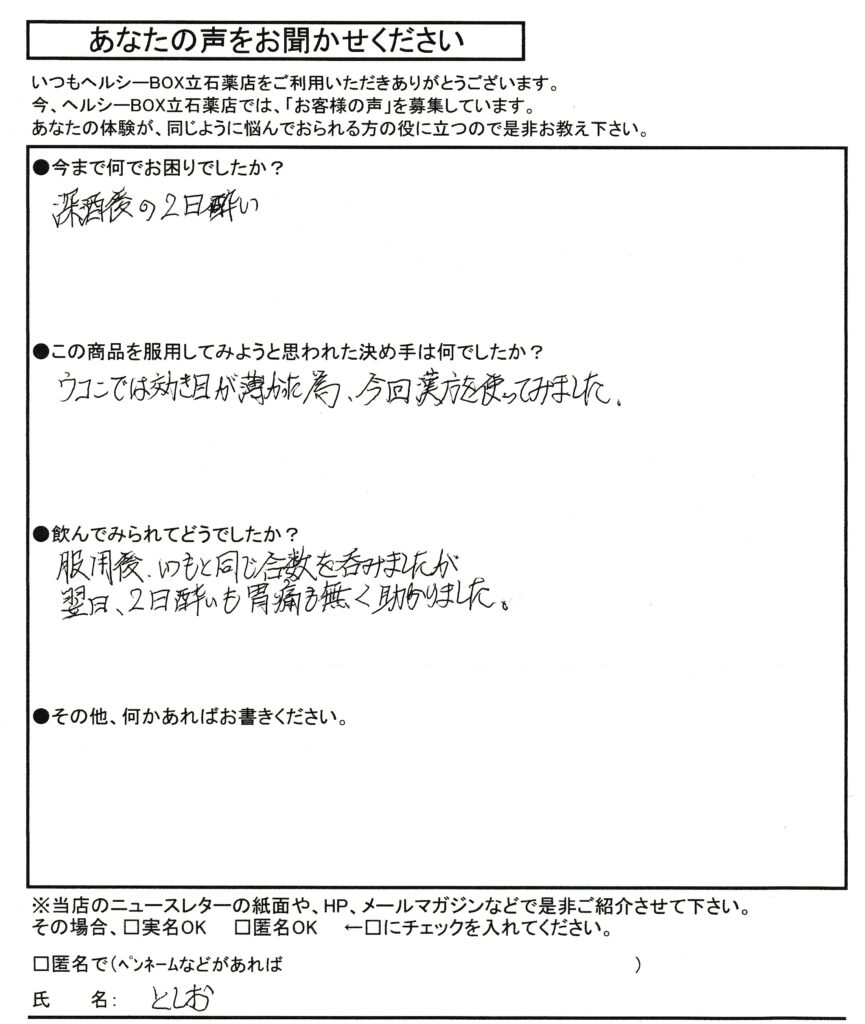 そこで、漢方系サプリメントの「肝廣仙・かんこうせん」をお勧めしました。
